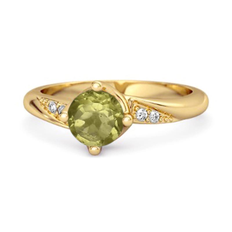 Peridot Classic Solitaire with Accent CZ Ring - Sterling Silver Gold Vermeil