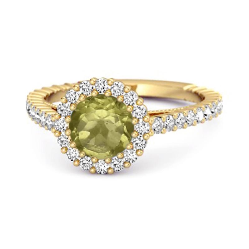 1.35 Ct Peridot ring in sterling silver with halo and pavé accents. A vibrant green gemstone for birthdays or gifts.