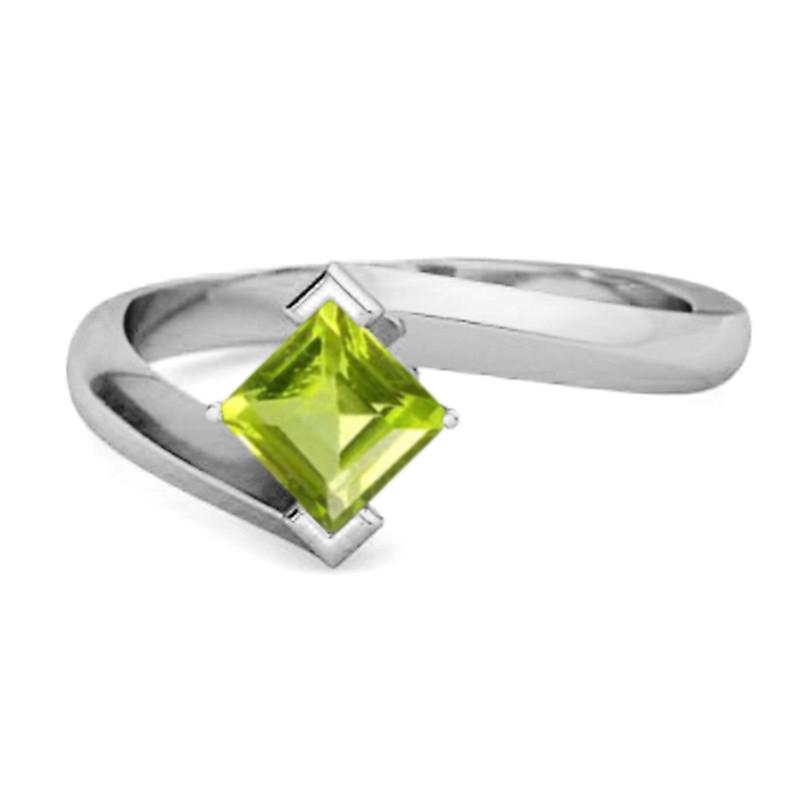 925 silver ring with a 0.75 ct square Peridot in a sleek tension-style setting. Modern and refreshing design.