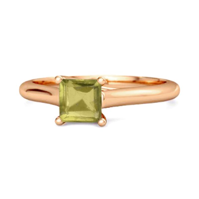 Solitaire Square Cut Peridot 925 Sterling Silver Rose Gold Vermeil Promise Ring