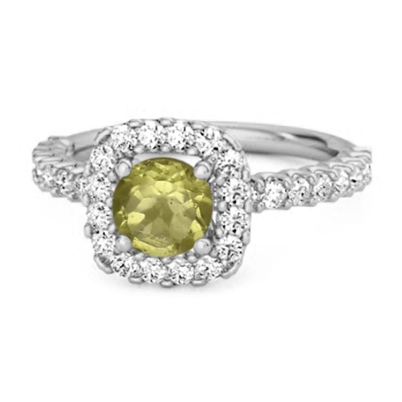 Peridot Round Cushion Halo Ring – Sterling Silver