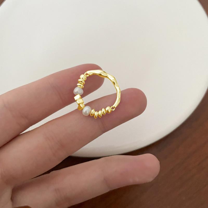 Unique Irregular Silver Pearl Ring For Women Adjustable Fashionable Geometry Design
