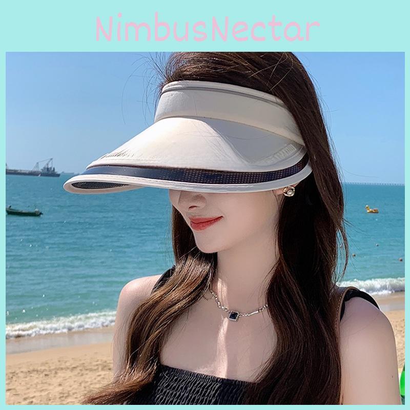 This summer womens sun hat features a large brim and a sleeveless, open-top design, providing effective UV protection and shade. Made of ice silk fabric with nylon and spandex,offering a comfortable fit for head sizes 55-60 cm. Ideal for outdoor activities like beach outings or casual strolls, it combines breathable, moisture-resistant materials with stylish lettering accents for a fashionable look. Wipe clean with a damp cloth to maintain its quality.