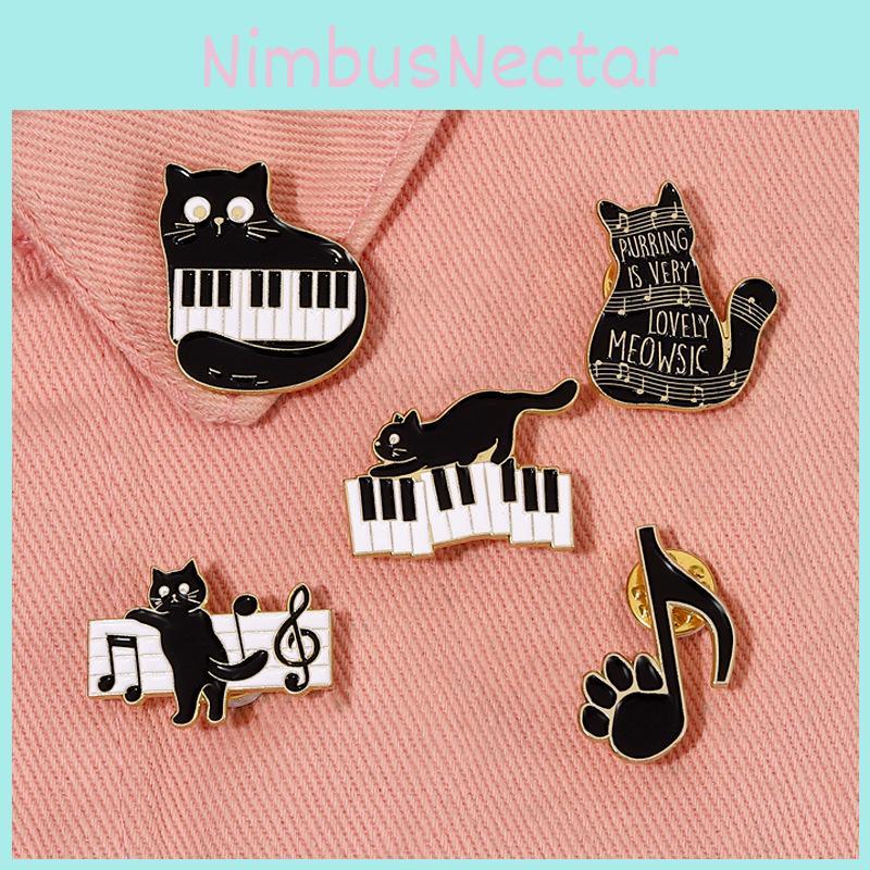 Adorable Cat Shaped Brooch Displaying Creative Cartoon Piano Notes With Unique Charm