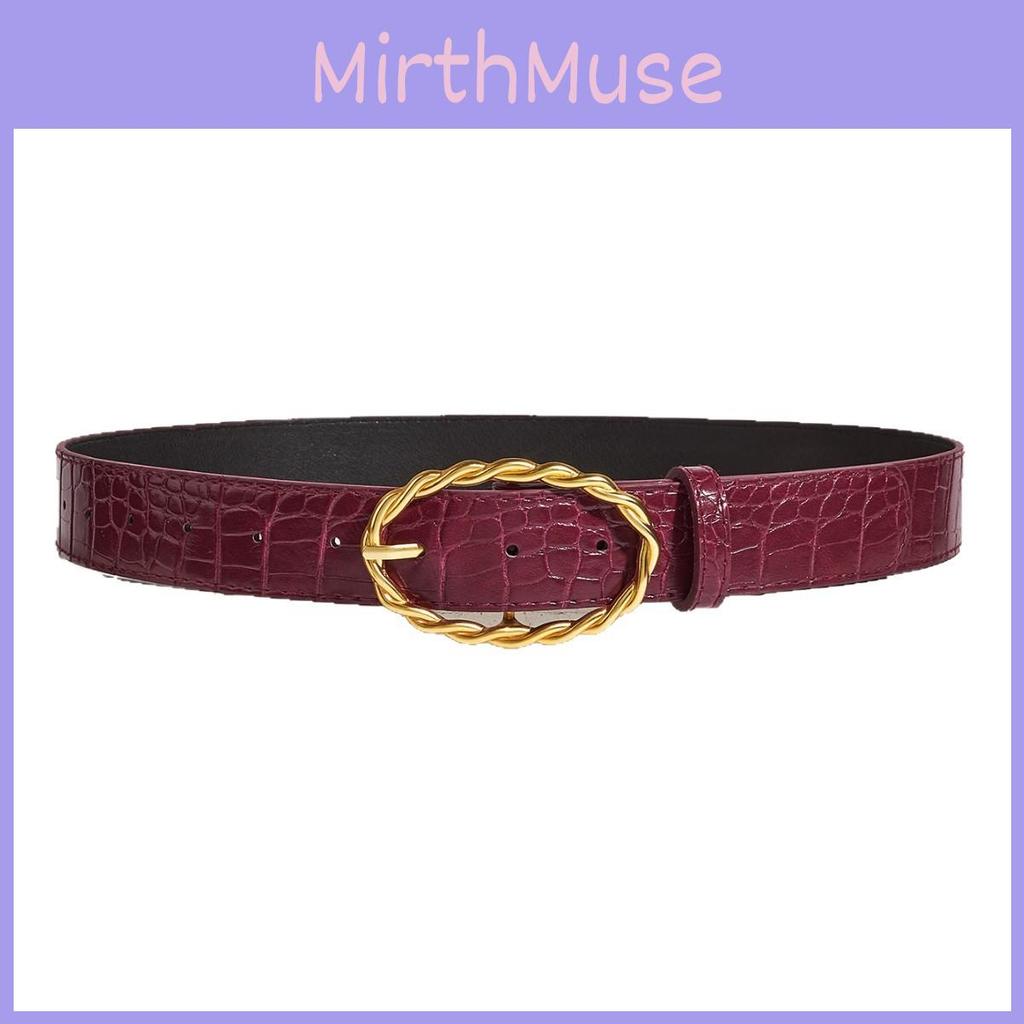 Womens Fashion Stone Grain Pu Leather Belt With Gold Alloy Buckle For Casual Wear Summer