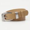 This women's belt features a leather construction with an antique finish, measuring 2.4 cm wide, 103 cm long, crafted from high-quality synthetic materials and alloy buckle with a pin closure. Its minimalist design incorporates auspicious patterns, suitable for daily wear and fashion-forward ensembles. Perfect for business casual, casual outings, or adding a chic touch to office attire. To maintain its appearance, wipe clean with a damp cloth.