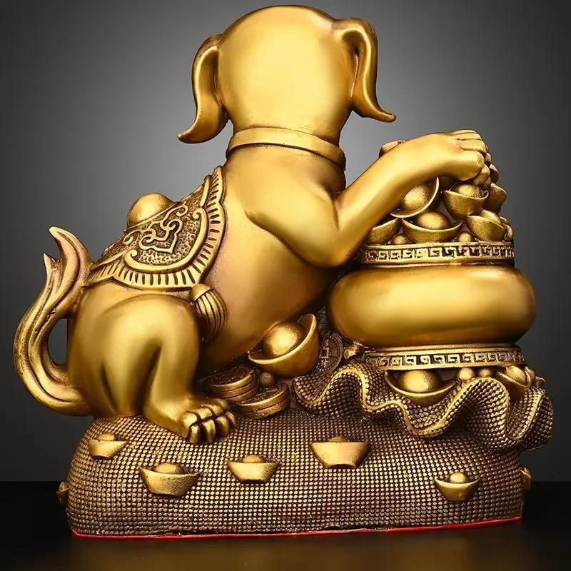 Feng Shui Copper Solid Brass Dog Ornaments Treasure Money Dog Home Decor Crafts