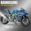 1:9 Kawasaki H2R Ninja Spray H2R Alloy Die Cast Motorcycle Model Toy Vehicle Carrying Lights Off Road Autocycle Toys Car