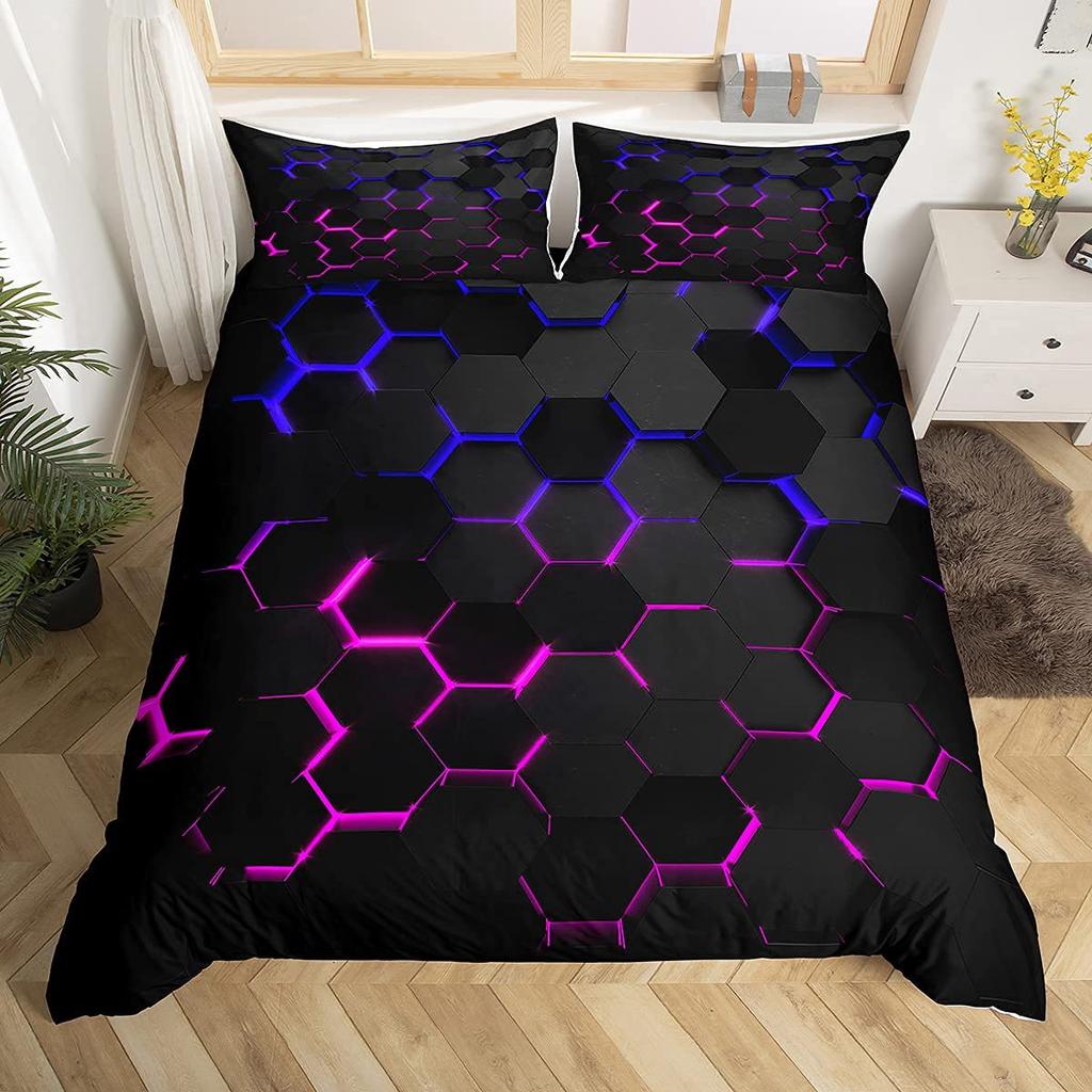 Pink Blue Neon Light Three-Piece Quilt Cover Digital Printing Bedding Set Honeycomb Bed Cover