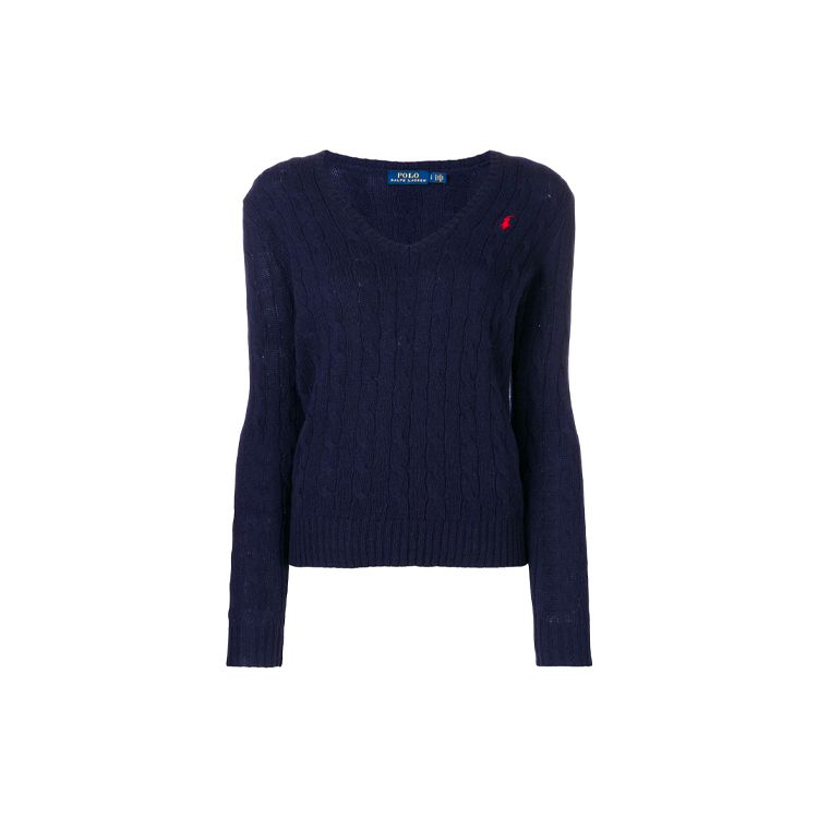 Polo Ralph Lauren FW21 Logo Solid V-Neck Knit Sweater Women Sweater Blue 211508656-009