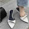 Fashion 2025 Summer New Style Pointed Toe High Heels Women's Patent Leather Sandals One Strap Thin Wedges Black Versatile Simple Design