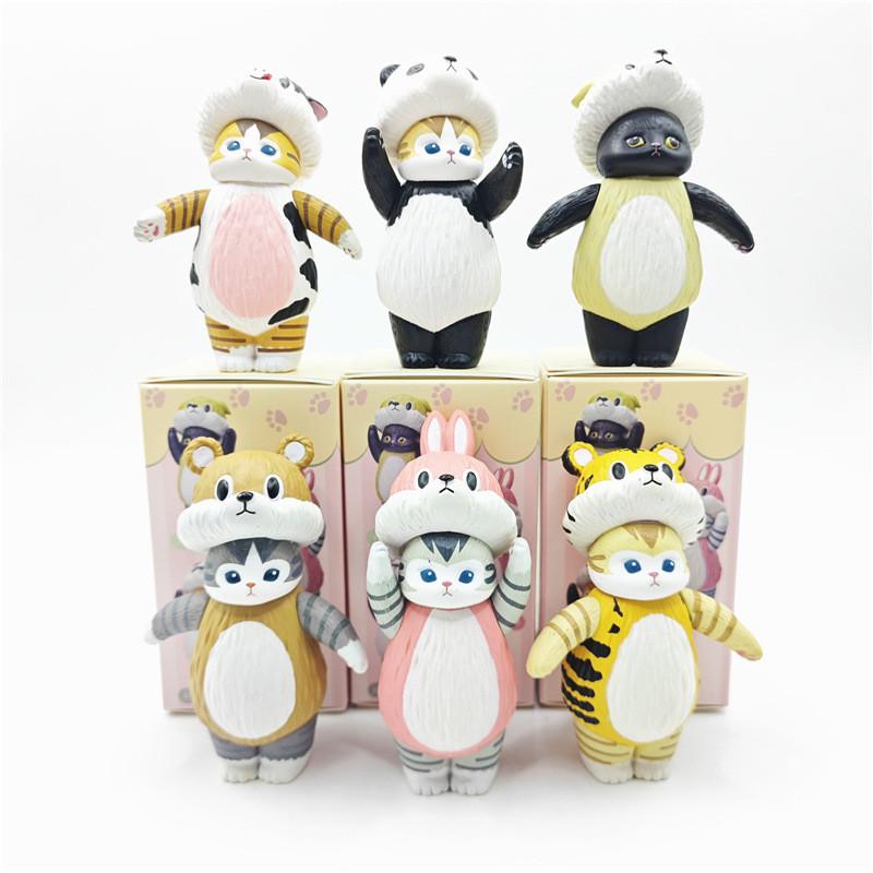 Adorable Pvc Cat Figurine With Cow Headgear Collectible Blind Box Toy 8-9cm