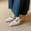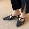 Fashion New Beautiful Cut-out Breathable Woven Baotou Cool Slippers for Women In Summer, Pointed-toe Women's High-heeled Shoes Semi-drag