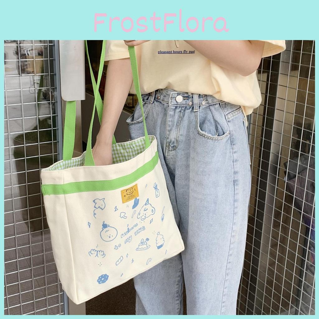 Adorable Ins Style Canvas Tote Bag Cute Casual Shoulder Bag For School Everyday Use