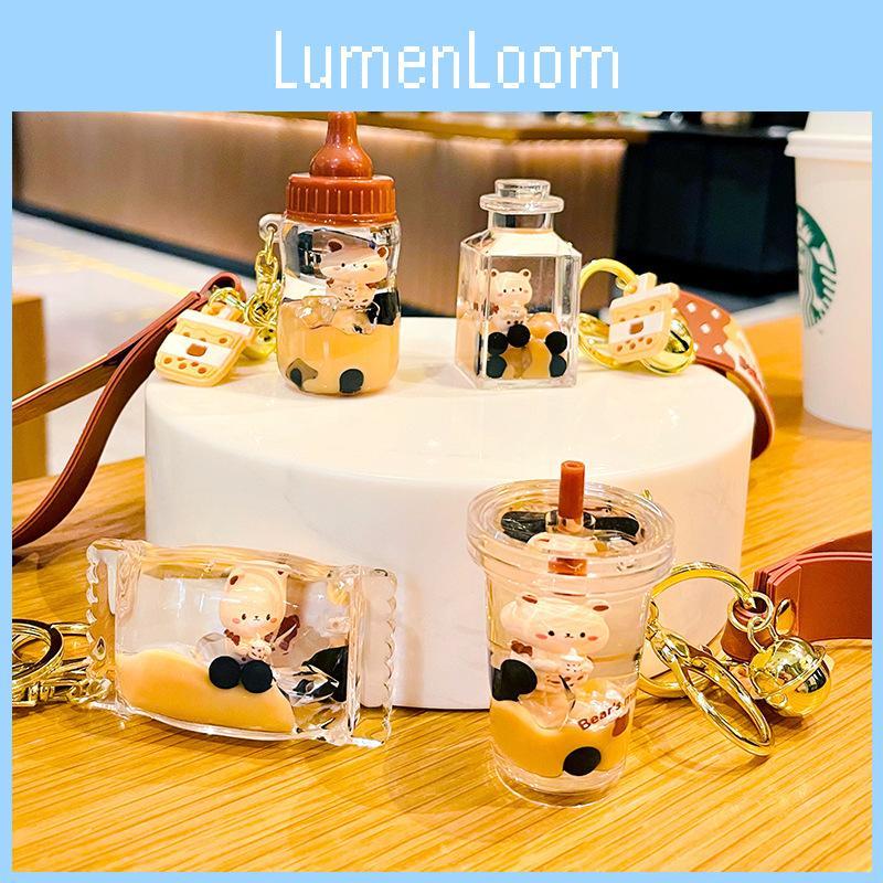 Stylish Acrylic Bear Keychain With Liquid Floating Milk Tea Design For Gifts