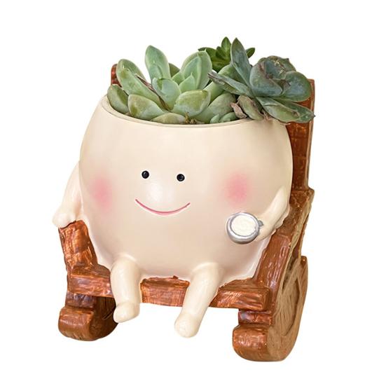 Rocking Chair Smily Face Planter Outdoor Unique Sit Rocking Chair Flower Pots Funny Planter Pot with Drainage Holes for Indoor Outdoor Plants