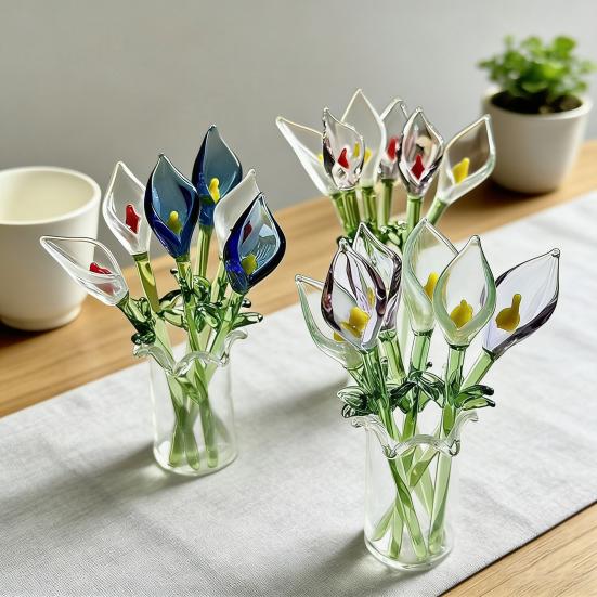 These mini glass flowers are crafted from thick, durable glass, ensuring long-lasting quality and sturdiness. Their vibrant colors bring a romantic and cheerful atmosphere to any space, making them ideal for home, office, or party decorations.