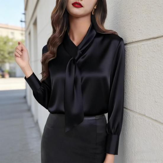 This women's long sleeve shirt is crafted from high-quality polyester, offering breathability and a skin-friendly feel for all-day comfort. Featuring a silky satin texture, it adds an elegant and charming touch to your wardrobe.