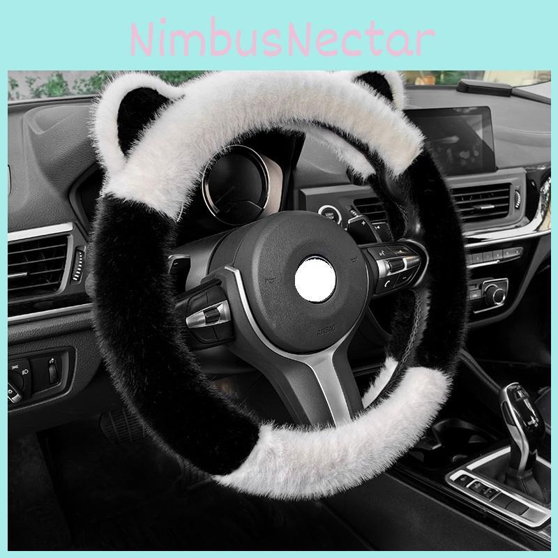 2023 New Cute Long Hair Winter Car Steering Wheel Cover Black And White D-type Simple Style