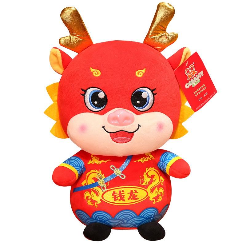 Introducing the auspicious Dragon New Year Mascot Plush Toy, the perfect gift to welcome prosperity and good fortune in the coming year! This creative and adorable plush toy is designed in the shape of a dragon, symbolizing strength, power, and luck. It is made from high-quality materials, ensuring both durability and a soft, cuddly texture.