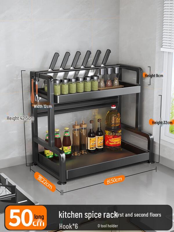 Double-Layer Kitchen Storage Rack with Knife Holder