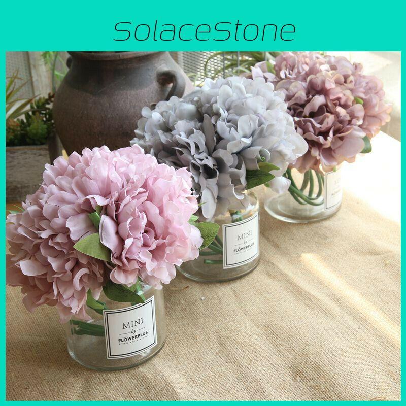 5 Heads Artificial Peony Silk Fake Flowers Hydrangea Bouquet For Elegant Wedding Party Decor**