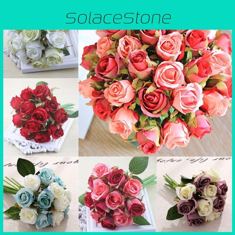 Lifelike 12 Head Artificial Flowers Rose Silk Bouquet For Bridal Weddings And Events