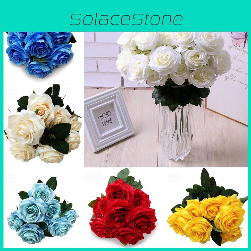 Elegant 10 Heads Silk Rose Artificial Flowers Bouquet For Wedding And Home Decor