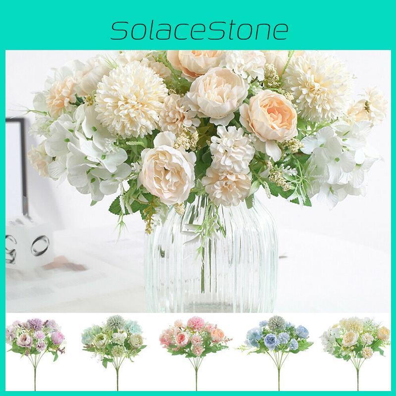 It includes 1 ball chrysanthemum , 2 peony , 2 big hydrangea , 4 small hydrangea.Overall Height 30cm,Width 18cm.It can be placed in a vase separately, it can be equipped with ceramic vases, rattan vases, glass vases, wooden vases, it can be combined with other hay, or it can be packaged with other flowers and plants. The effect is very good.The perfect gift for friends and family.