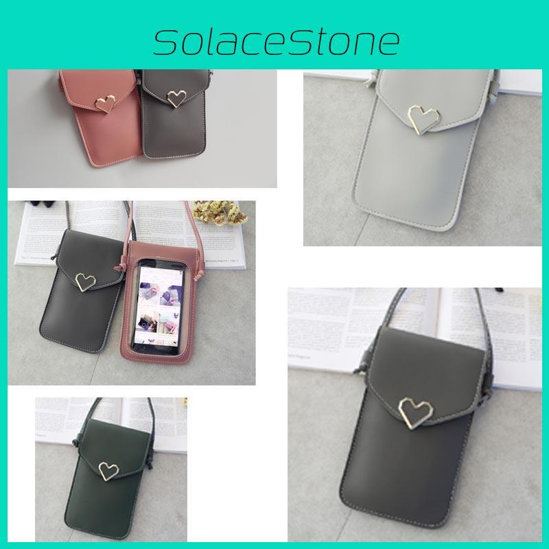 Stylish Women Simple Pu Leather Heart-shaped Decor Transparent Touch-screen Mobile Phone Bag