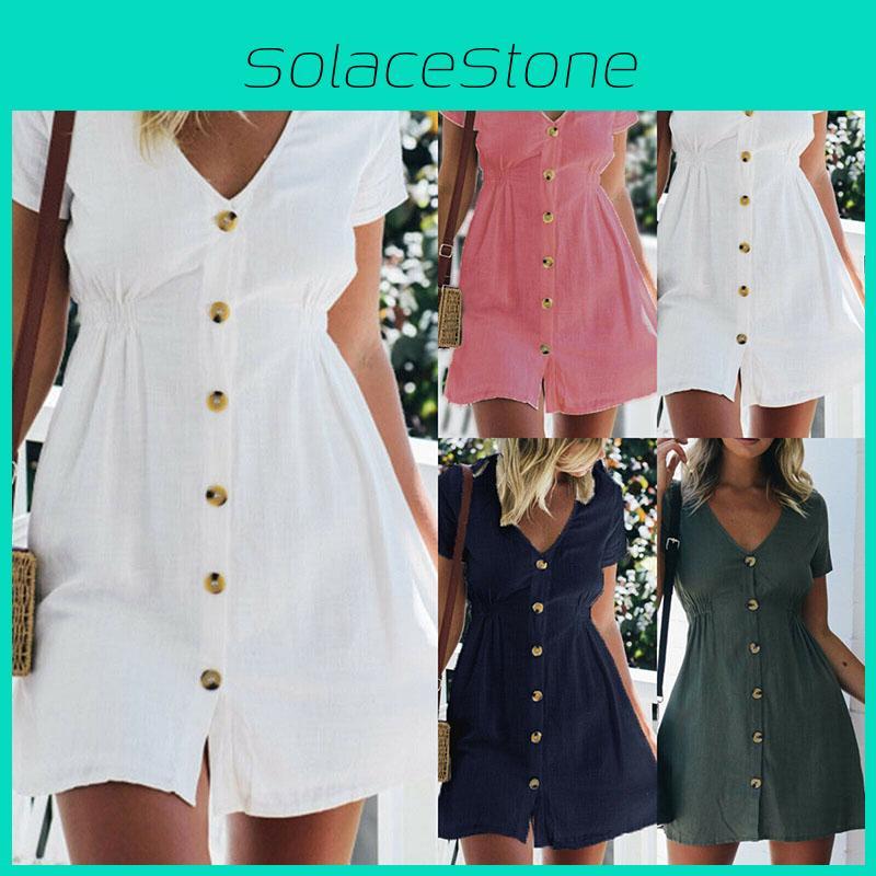 Stylish Women Button Down V Neck Mini Tea Dress In Soft Comfortable Fabric Perfect For Summer Days