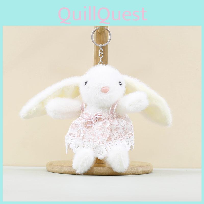 This plush bunny keychain features a charming floral dress design, crafted from soft short-pile plush with PP cotton filling for a cuddly feel.It offers durable construction and vibrant colors like white, purple, gray, light brown, and pink. Ideal for decorating bags or keys, it adds a playful touch to everyday items. Wipe clean with a damp cloth to maintain its appearance.