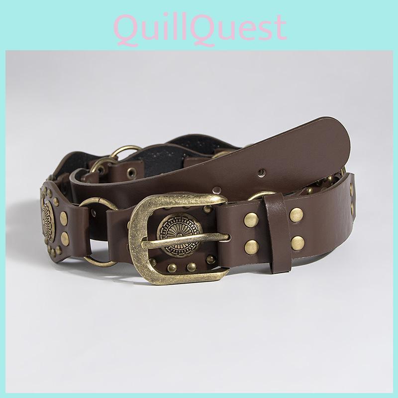 retro denim belt, vintage style waist belt, fashion punk belt, women's decorative belt, handmade leather belt, adjustable belt for women, artistic casual belt