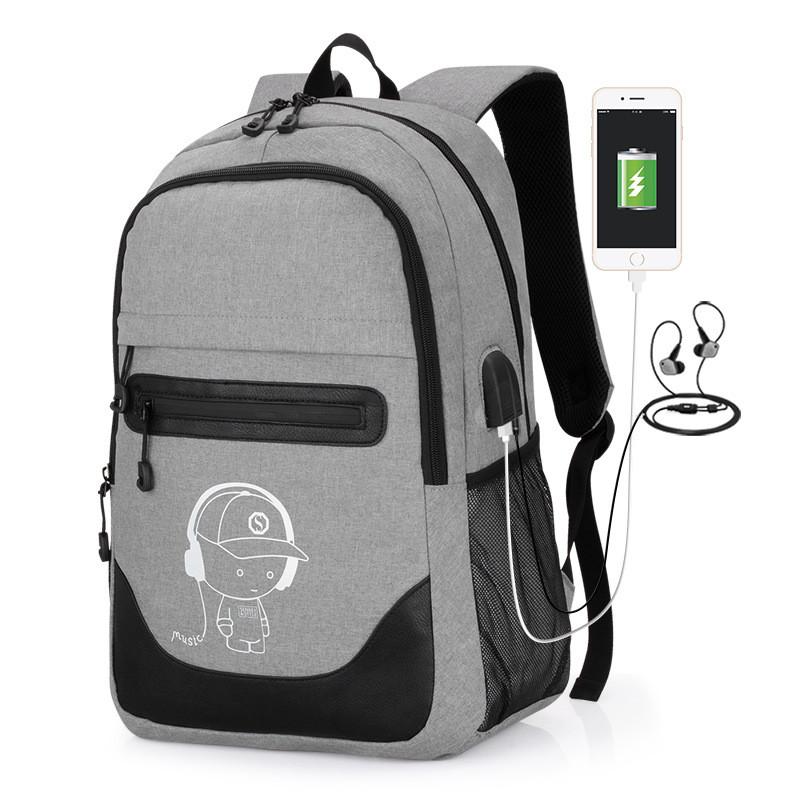 Cute Cartoon Printed Night Luminous Waterproof Laptop Backpack With Usb Charging