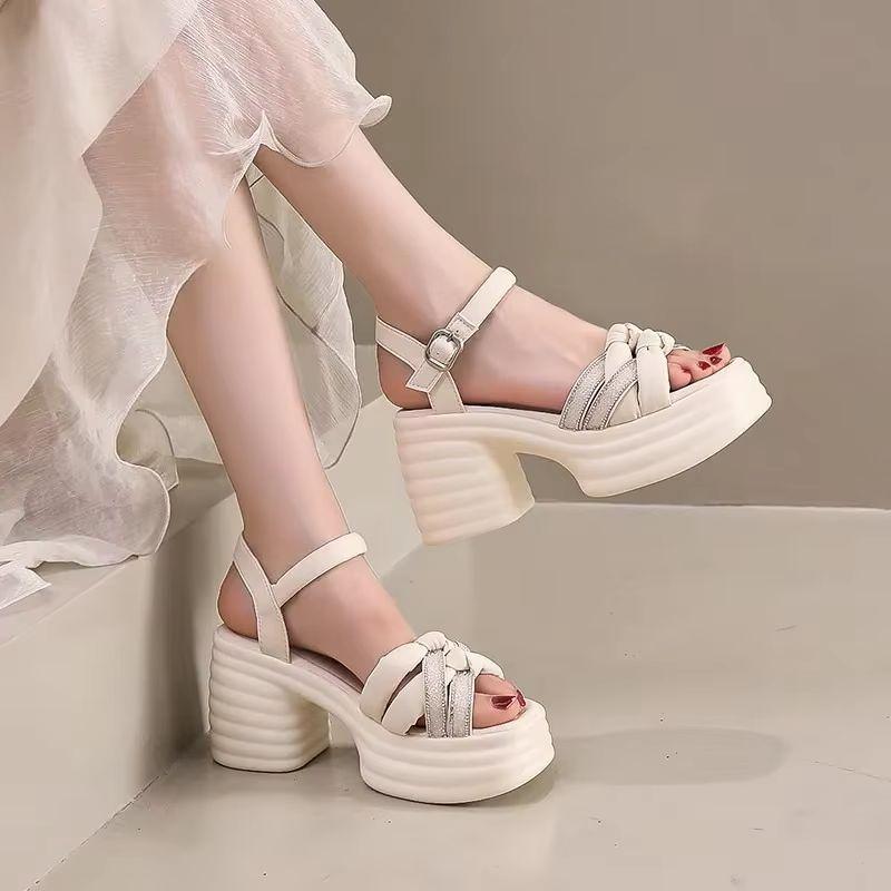 Fashion Women's New Shoes 2025 Open Toe Women's Sandals Elegant Dress Sandals Women Crystal Buckle Shoes Platform Chunky Heels Sandalias