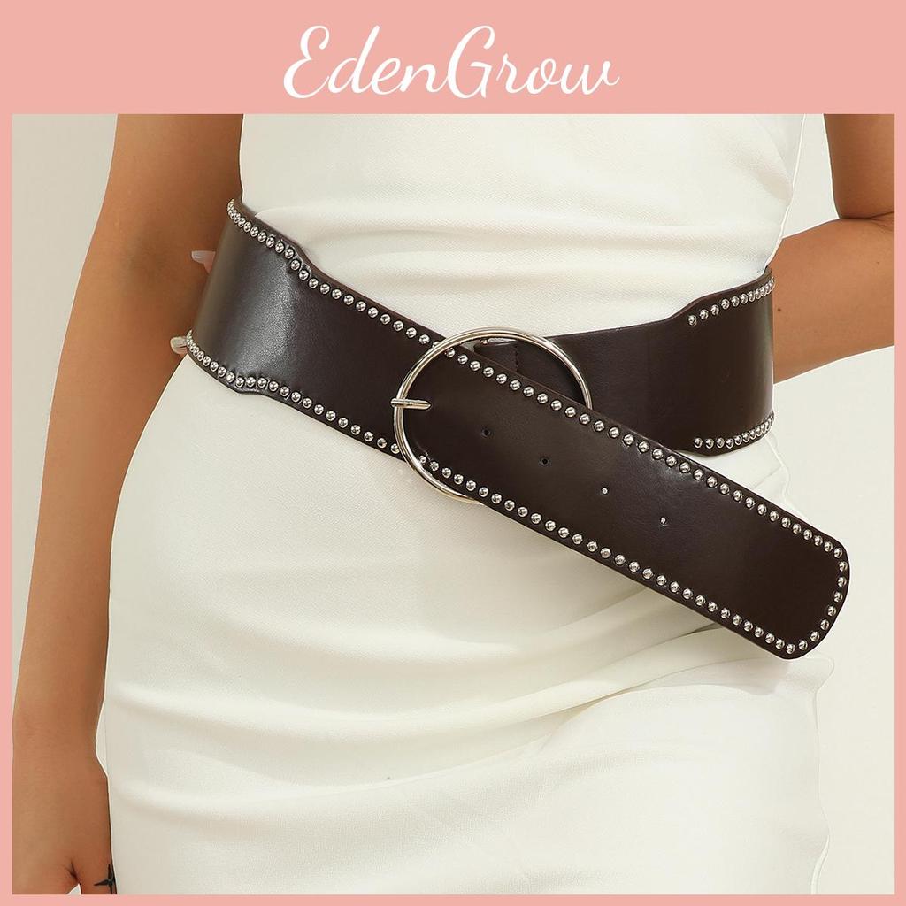 Punk Style Rivet Belt With Round Alloy Buckle For Fashionable Streetwear
