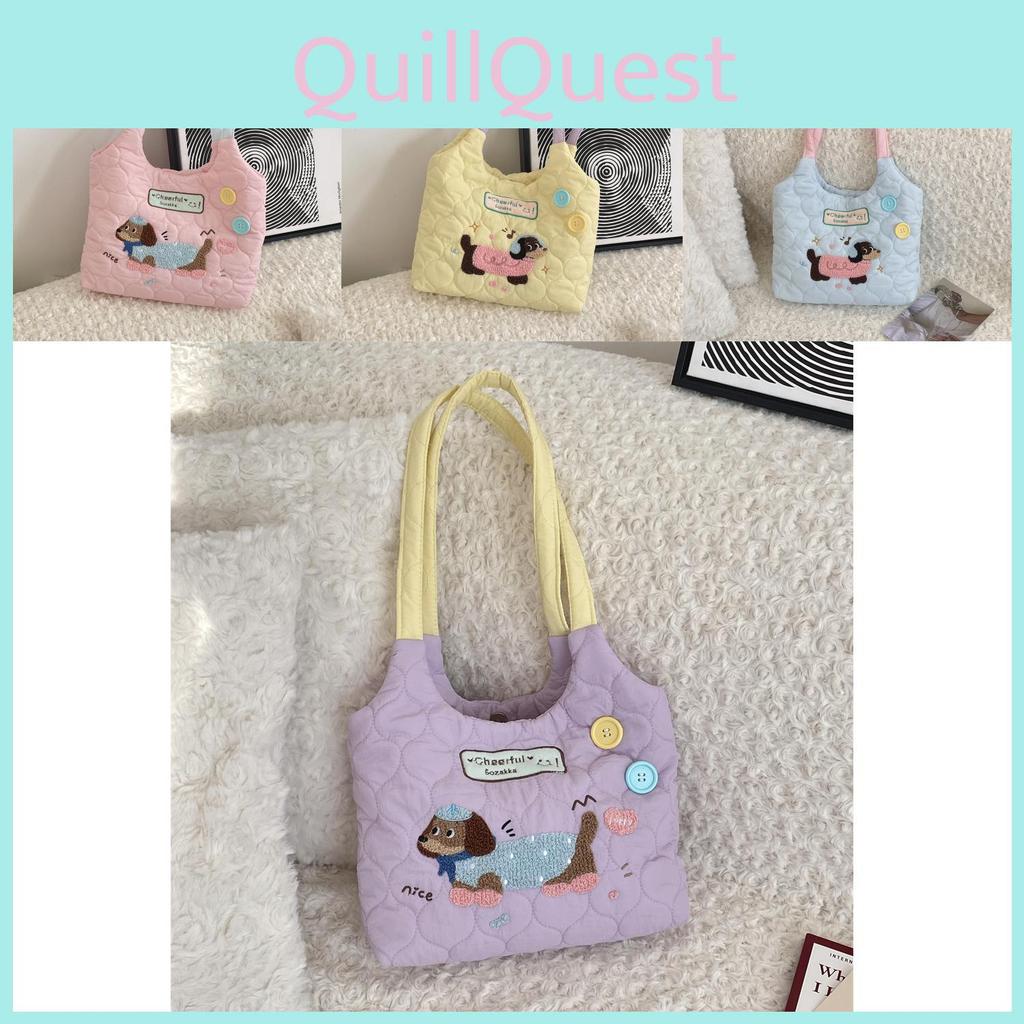 Trendy Street Style Student Tote Bag With Cute Embroidered Dog In Beautiful Hues