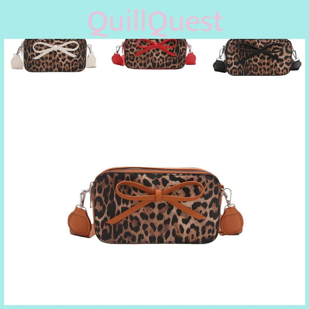 Fashionable Pu Leather Mini Square Shoulder Bag With Unique Bow And Colorful Leopard Print Ideal For Urban Outfits