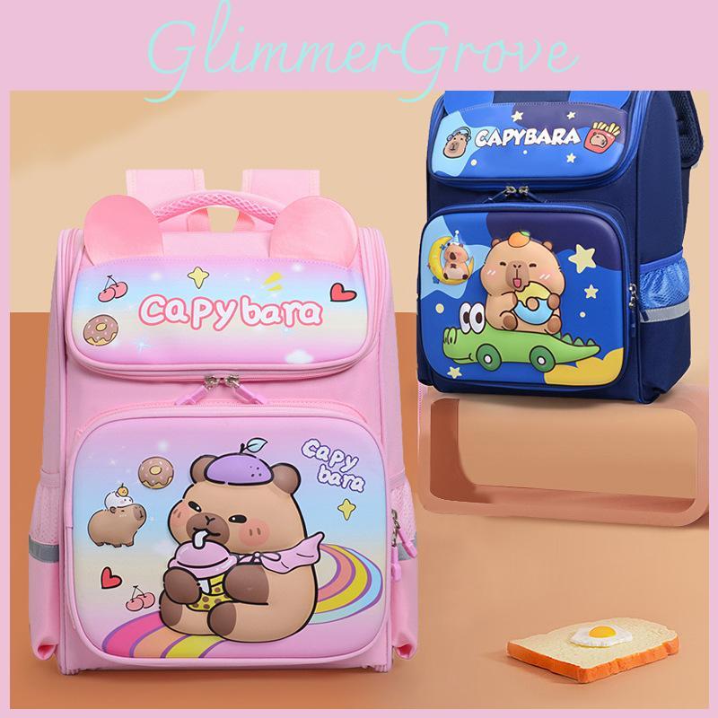 Cute Cartoon Capybara Pattern Kids Backpack For School With Durable Nylon For Boys And Girls