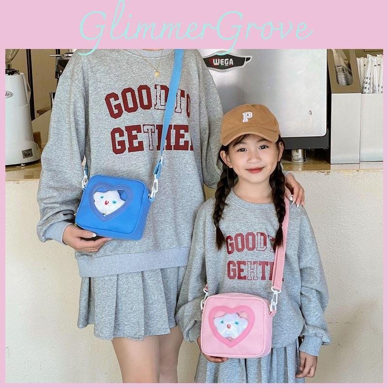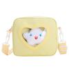 This unisex kids' shoulder bag features a transparent canvas design with a charming heart pattern, suitable for preschool-aged children. Made of durable cotton with polyester lining, it measures approximately 10 inches by 8 inches by 2 inches, supporting lightweight daily use. Ideal for school, outings, or playtime, it helps reduce load and keep essentials organized. Wipe clean with a damp cloth for maintenance.