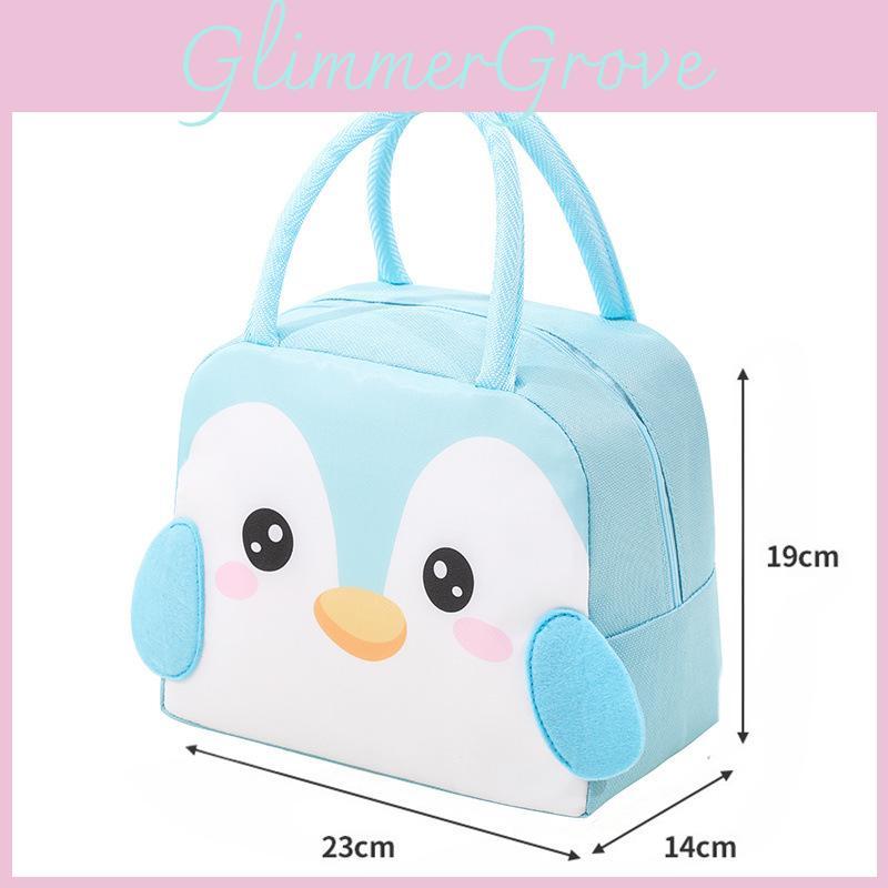 This 3D cartoon-style lunch bag features a durable oxford cloth exterior with thick aluminum foil insulation, measuring approximately 10 inches long, 4 inches wide, and 6 inches high. Designed to keep meals warm, it is suitable for daily school, outdoor picnics, or travel. Easy to clean with a damp cloth, it offers practical insulation and vibrant 3D animal designs.
