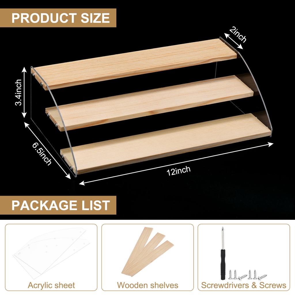 3-5 Tier Acrylic Transparent Base Solid Wood Display Stand Stepped Display Stand Rack for Cupcakes Collectibles Figure Brown
