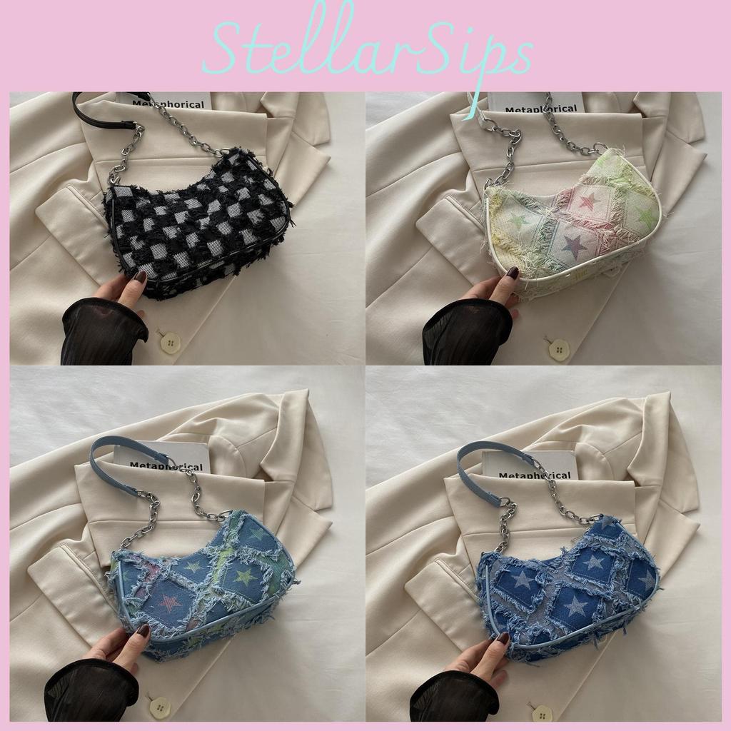 Introducing the Modern Canvas Crescent Bag, where chic street fashion meets functionality in a stunning crossbody purse designed specifically for the trend-savvy woman. Available in a variety of captivating colorsfrom classic black check to whimsical blue pentagramsthis bag is the quintessential accessory for anyone looking to elevate their everyday style. The unique crescent shape not only adds a touch of modern flair but also provides ample room for your essentials, making it perfect for daily use or a night out on the town.