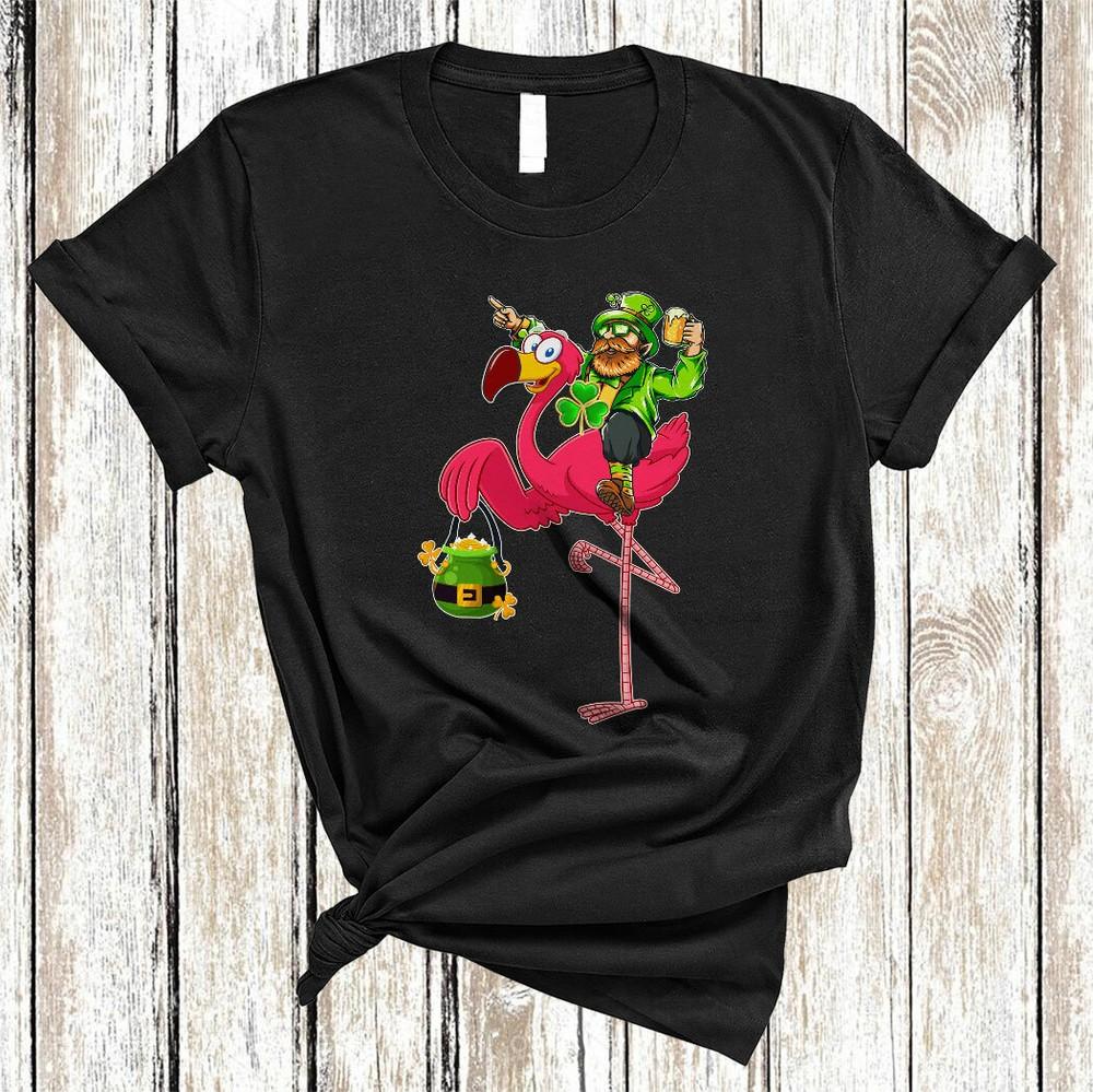 Leprechaun Drinking Beer Riding Flamingo Funny St. Patrick's Day Drinking Shirt
