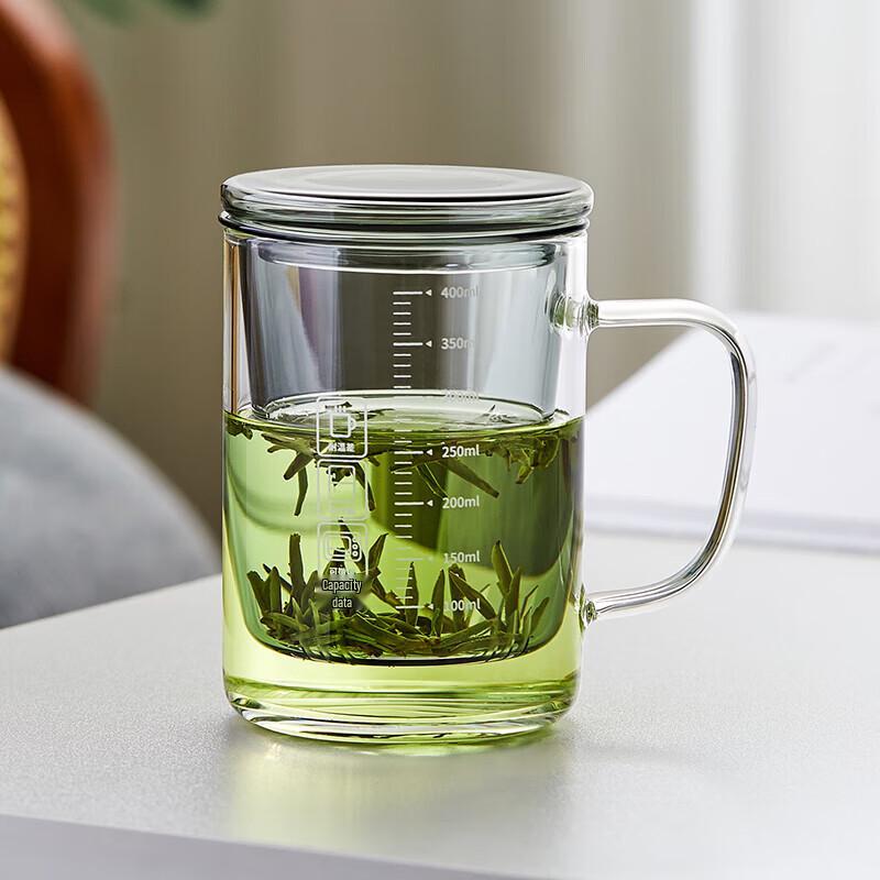 ModelThickened Borosilicate Glass Tea Infuser Cup w/ Handle & Lid