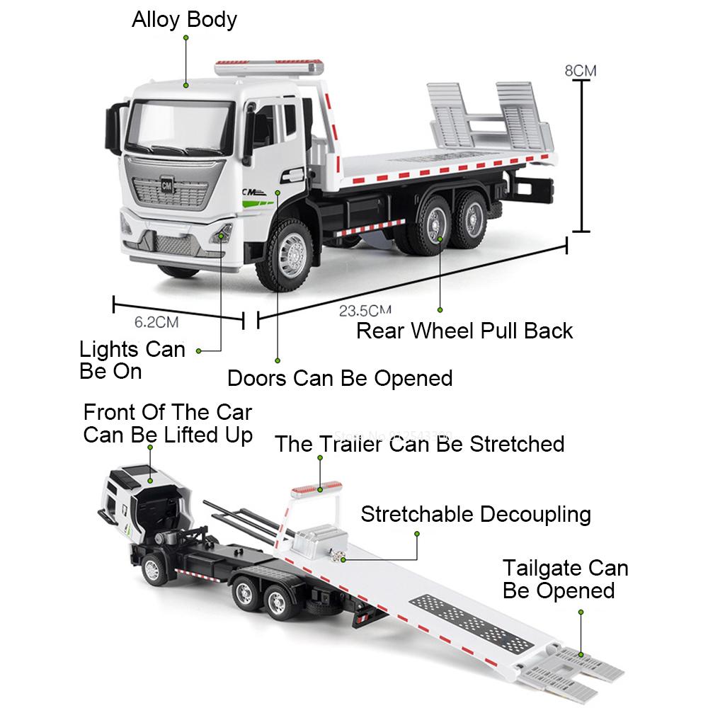 1:32 Scale Road Rescue Car Muck Transport Model Toy Flat Trailer Sound Light Engineering Vehicle Models Hobby Ornaments Gifts