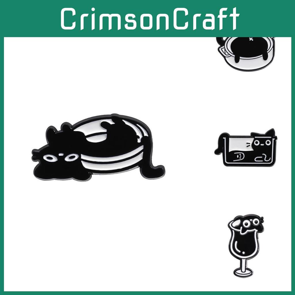 Stylish Cartoon Character Black Cat Brooches Set Charming Metal Accessories For All
