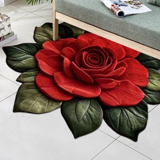 3D Flower Rug Realistic Floral Anti-Slip Floor Mat Absorbent Quick-Dry Bathroom Rug for Kitchen Bedroom Entryway Vanity Area