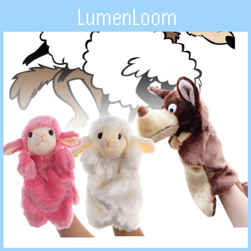 Sheep and Wolf Hand puppet, this unique toy is made of ultra-soft short plush fabric, charming cute characters, including fluffy white and pink sheep, and a Wolf.