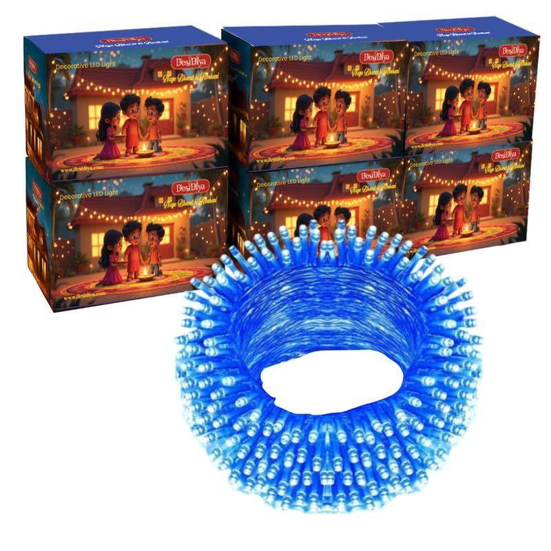 12 Meter (39Ft) LED Rice String Lights – Blue Fancy Decorative Fairy Lights for Indoor Outdoor Use, Bedroom, Wedding & Festival Ambience Pack of 6